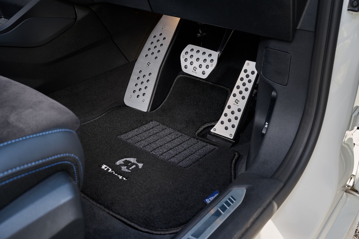 Einen weiteren essentiellen Beitrag zu dem optimierten Auftritt des abgebildeten 120 leistet sein neuer Radsatz. Es handelt sich um 3DDesigns hauseigene Type III-Schmiedefelgen im 19-Zoll-Format. Sie verfügen über ein kraftvoll gezeichnetes Fünf-Arm-Design und setzen sich mit ihrem grauen Finish dezent von der weißen Lackierung der Karosserie ab. Last but not least bieten die Japaner auch für das Interieur Accessoires zur Individualisierung, in Form einer Pedalerie und bestickter Fußmatten.