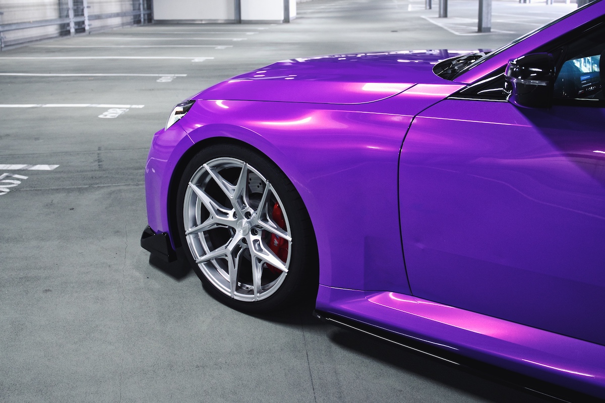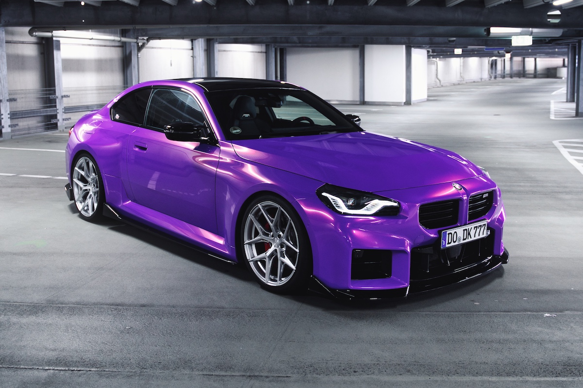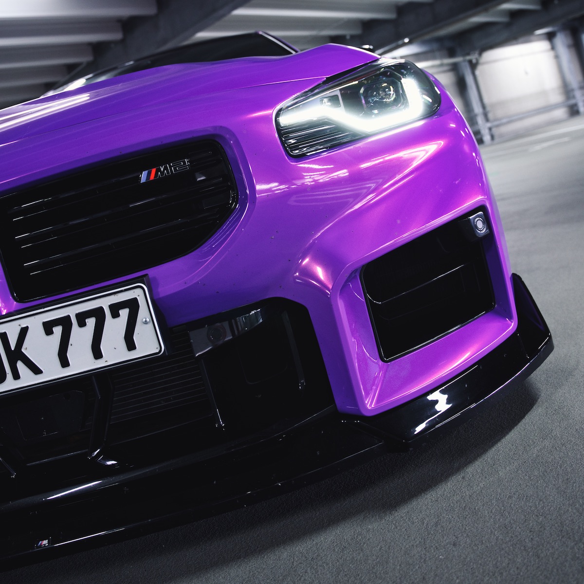 Ein KW Variante 3-Gewindefahrwerk bewirkt einerseits eine Tieferlegung, welche die neuen Räder perfekt unter den Kotflügeln stehen lässt. Andererseits beschert es dem M2 eine optimierte Fahrdynamik. Die Installation der Fahrwerkstechnik und Räder sowie die Eintragung und eine professionelle Achsvermessung erfolgten bei cardiologie Tuning in Bergisch Gladbach. Als abrundendes Highlight erhielt das M-Coupé bei WrapCut Folientechnik eine Inozetek Super Gloss Metallic-Folierung in Royalty Purple.