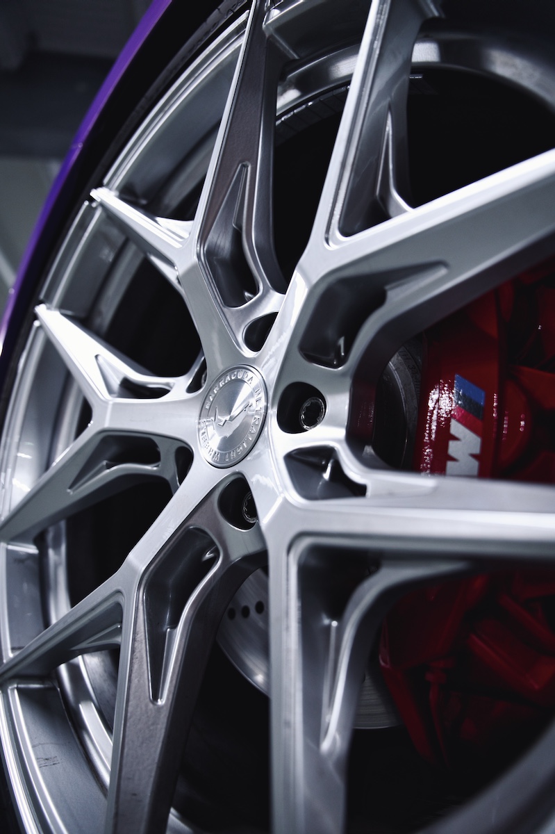 Wie beim RS 6 wählte MrSpectrum für den M2 die Razzer-Felgen aus Barracudas Ultralight Series. Sie zeichnen sich dank der Produktion im Flow Forged-Verfahren durch ein geringes Gewicht aus. An der Vorderachse ist die Concave-Version in 10×20 Zoll installiert, hinten kommt sogar die 10,5×21-zöllige Deep Concave-Variante zum Einsatz. Das Finish in Hyper Silber lässt die detailverliebt und raffiniert gestylte Y-Speichen-Felge ebenso klassisch wie zeitlos wirken. Die Hankook Ventus S1 evo3-Bereifung misst 285/30ZR20 und 295/25ZR21. Natürlich verfügt die Razzer über passende Teilegutachten, welche eine problemlose Eintragung in die Fahrzeugpapiere des BMWs ermöglichten.