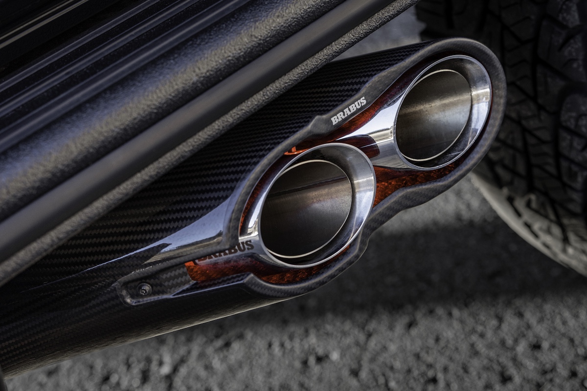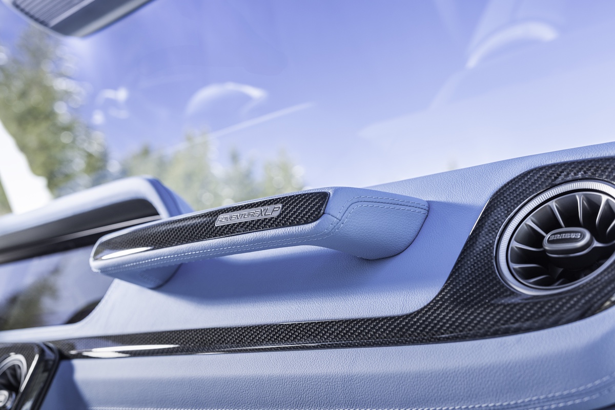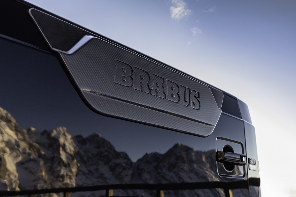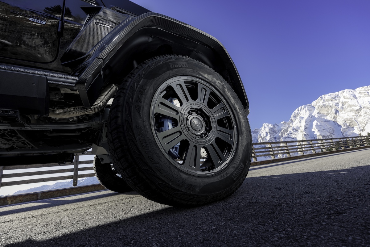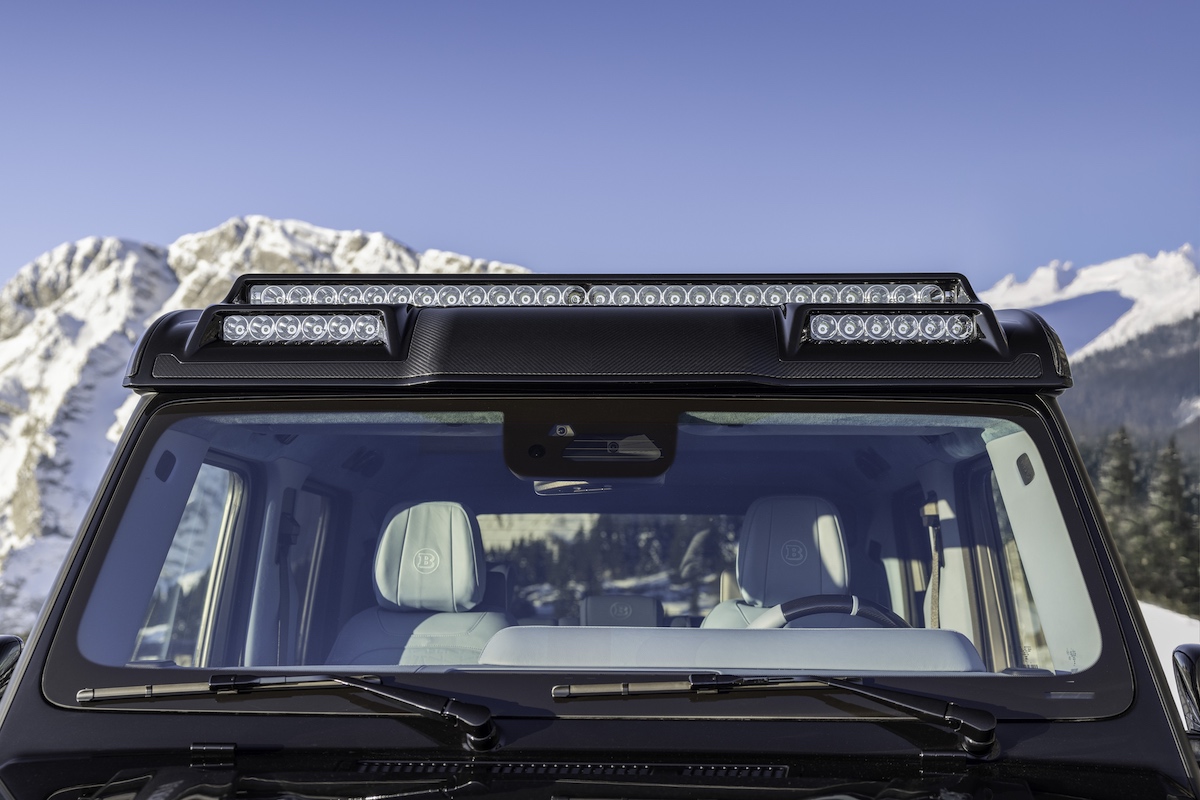 Unter der Haube geht’s ab – dank eines fetten Upgrades des Vierliter-Biturbo-V8 mit Hochleistungs-Turbos und mehr. So liegen verrückte 800 PS und 1.000 Nm an. So beamt sich der XXL-AMG in 4,8 Sekunden auf 100 km/h. Und das, obwohl er noch gigantischer ist als in Serie. Der Grund? Brabus machte den G 63 einfach mal zum Hardcore-Pick-up. On top kam ein typischer Brabus-Widebody-Kit – mit massig Carbon, logisch! An den Achsen: riesige 9,5×22-Zoll-Monoblock HD-Felgen. Die 325/55er All-Terrain-Bereifung lässt den XLP 800 erbarmungslos durchs Gelände pflügen. Zumal das Fahrwerk mit Portalachsen für absurde Bodenfreiheit sorgt. Das Interieur ist ein majestätischer Palast. Es rockt eine individuelle Leder-Neuausstattung in markanten „Sky Blue“, Carbon en masse und mehr.
