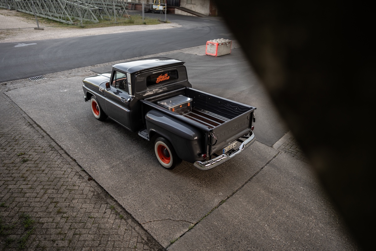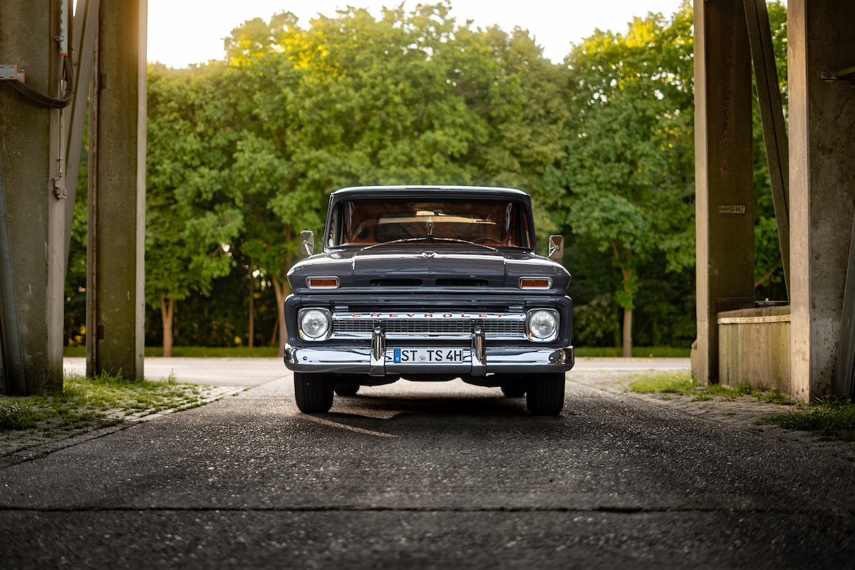 Torstens Leidenschaft für den Mustang war erloschen. Das Modell war ihm in Deutschland zu gewöhnlich geworden, bereitete ihm keine Freude mehr. So machte er sich auf die Suche nach Ersatz, etwas wirklich besonderem und seltenem. Die Lösung unterscheidet sich in zweierlei Hinsicht vom seinen bisherigen US-Cars: Erstens ist es ein Oldtimer, zweitens kein Muscle Car, sondern ein Pick-up. Gemeint ist natürlich der hier gezeigte Chevy C10 Stepside.