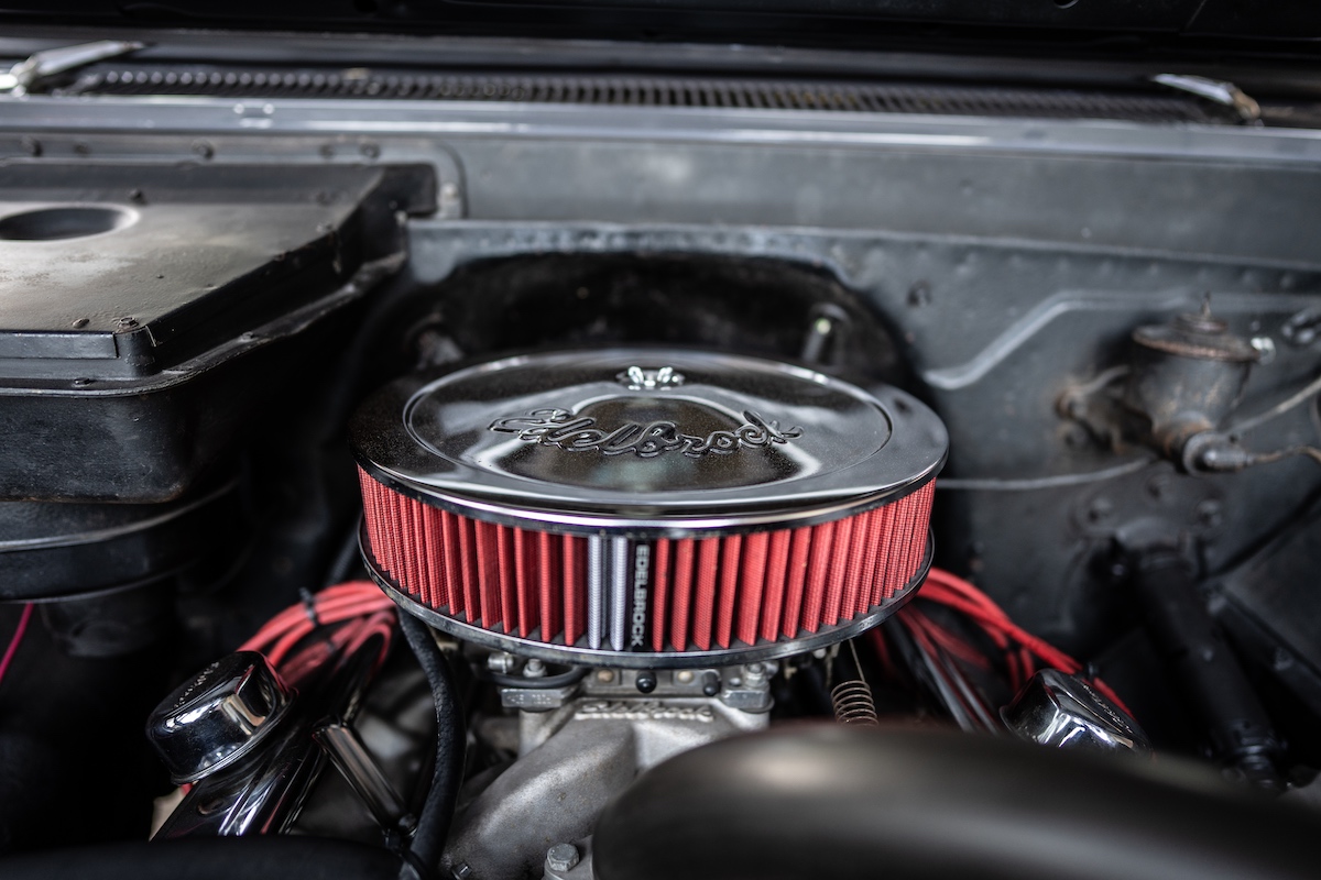 Motor: 5,7-Liter-V8-Ottomotor, Edelbrock-Vergaser, Edelbrock Performer EPS-Ansaugbrücke, Edelbrock-Luftfilter, 2,5-Zoll-Abgasanlage mit Fächerkrümmer und Flowmaster-Schalldämpfer, ca. 300 PS