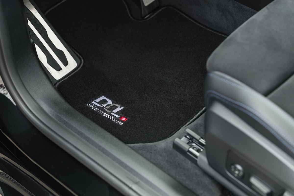 Zur stimmigen Ausrichtung der Rad/Reifen-Kombinationen und Optimierung des Fahrverhaltens offeriert dÄHLer Competition Line abrundend Fahrwerks-Upgrades. Die Basis-Lösung bilden akribisch auf die adaptiven Dämpfer des M Fahrwerks der M35i-SUVs abgestimmte Sportfedern «built by dÄHLer». Soll neben der Tieferlegung eine individuelle Dämpfungs-Verstellung möglich sein, empfiehlt sich das Performance-Sportfahrwerk «built by dÄHLer». Der Innenraum lässt sich mit «dÄHLer Competition-Line»-Fußmatten und einem Alcantara-Sportlenkrad verfeinern.