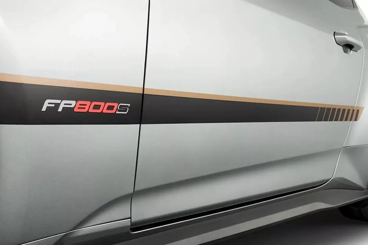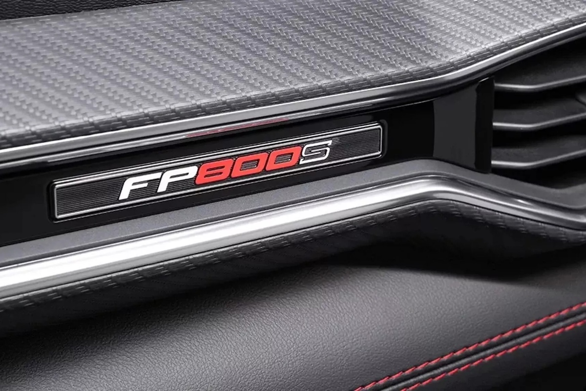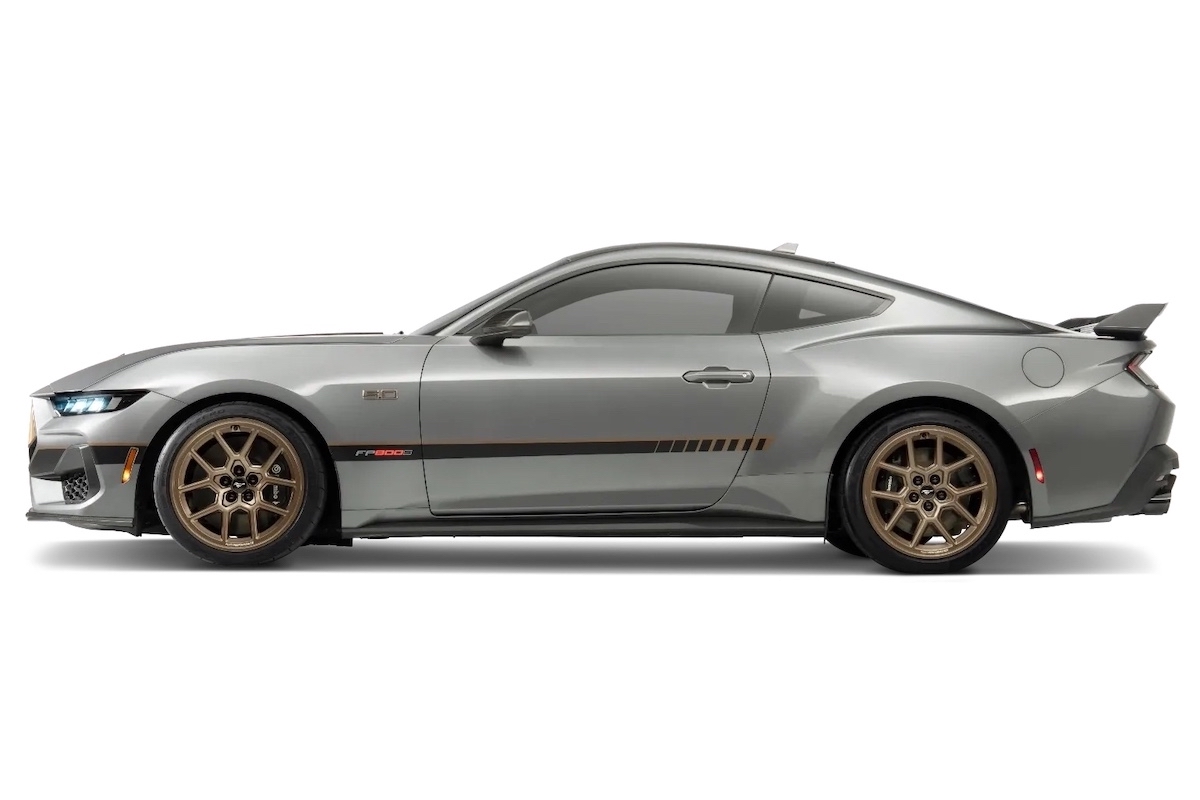 Wie der volle Paket-Name bereits verdeutlicht, weist der FP800S verschiedene bronzefarbene Akzente auf. So beispielsweise in Form der Einsätze am exklusiven Kühlergrill oder der Felgen. Es handelt sich um leichte R1-Flow-Forged-Räder in 19 Zoll mit vorne 305/30er und hinten 315/30er Bereifung. Weitere optische Merkmale sind mehrere Carbon-Karosserieteile. Es reicht vom Frontsplitter über den Motorhauben-Luftauslass und die Spiegelkappen bis hin zum Dark Horse-Heckspoiler. Abrundend kommen seitliche Zierstreife, eine schwarze Air Design-Heckblende und „Ford Performance“-Embleme hinzu.