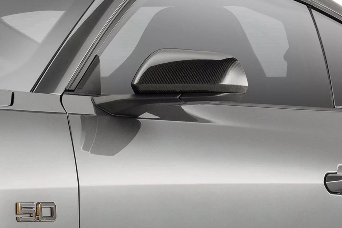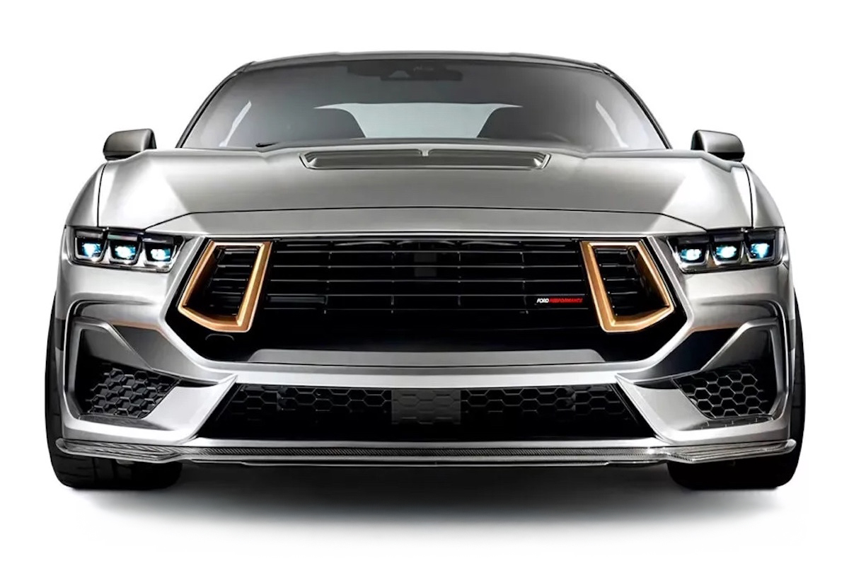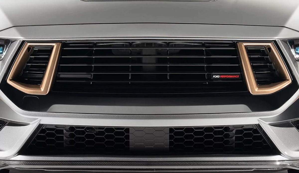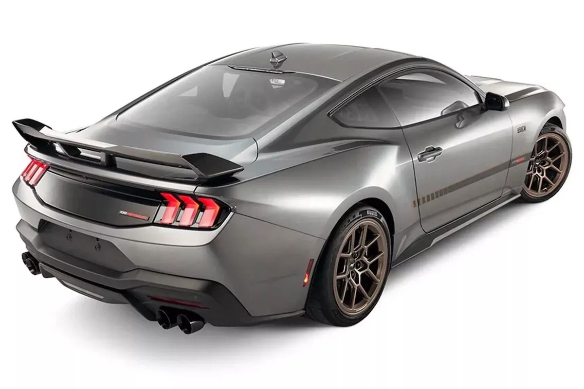 Wie der volle Paket-Name bereits verdeutlicht, weist der FP800S verschiedene bronzefarbene Akzente auf. So beispielsweise in Form der Einsätze am exklusiven Kühlergrill oder der Felgen. Es handelt sich um leichte R1-Flow-Forged-Räder in 19 Zoll mit vorne 305/30er und hinten 315/30er Bereifung. Weitere optische Merkmale sind mehrere Carbon-Karosserieteile. Es reicht vom Frontsplitter über den Motorhauben-Luftauslass und die Spiegelkappen bis hin zum Dark Horse-Heckspoiler. Abrundend kommen seitliche Zierstreife, eine schwarze Air Design-Heckblende und „Ford Performance“-Embleme hinzu.