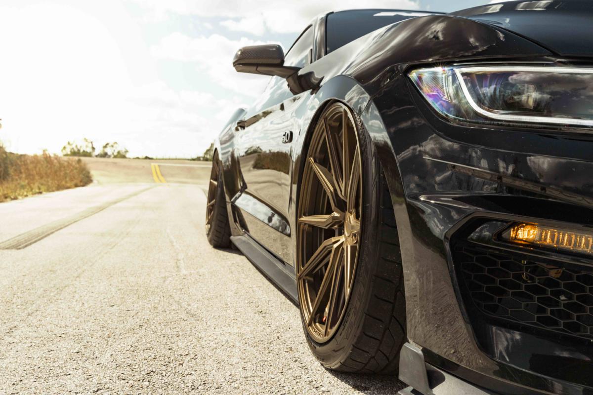 Nach den Modellen CV5, VFS-4, VWS-3, HF-2 und HF-1 rotiert nun das jüngste Design der im Flow Forming-Fertigungsverfahren produzierten Hybrid Forged Series in den Mustang-Radhäusern: HF-3 im leuchtenden Finish „Gloss Gold“ sowie den Dimensionen 10×20 und 12×20 Zoll mit passenden Nitto Invo-Gummis.