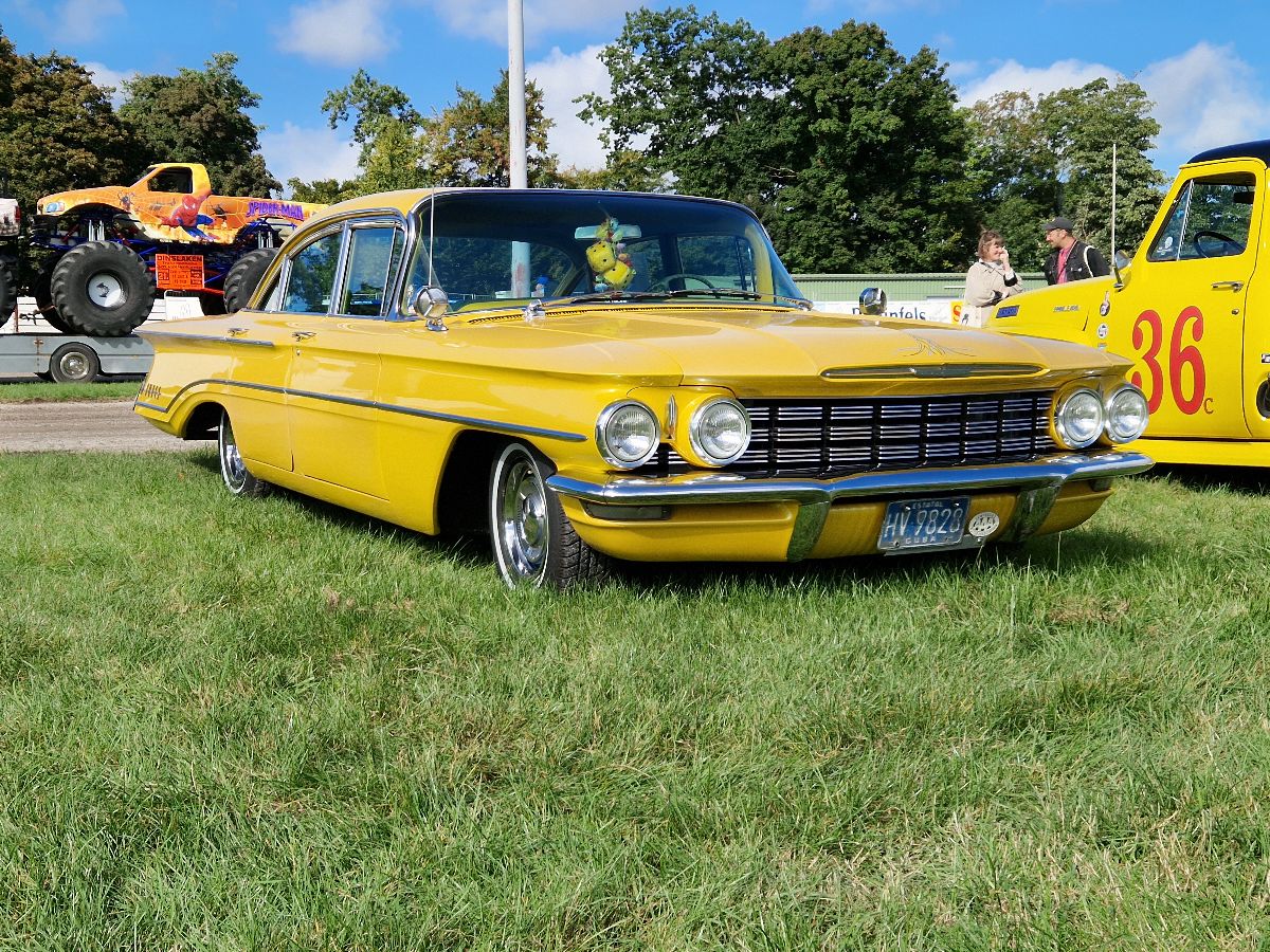 Und das, obwohl es im Vorfeld das ein oder andere ungünstige Vorzeichen gab. Allem voran war dies die Wettervorhersage, welche lange einen wolkenverhangenen Himmel und viel Regen in Aussicht stellte. Letztlich hatte Petrus aber doch erbarmen und verwöhnte die angereisten Teilnehmer den ganzen Tag über mit zwar nicht wolkenlosem, aber doch viel blauem Himmel samt reichlich Sonnenstrahlen. Zu entdecken gab es vor Ort einmal mehr eine spannende Mischung aus Muscle Cars, Sportwagen und Pick-ups unterschiedlichster Hersteller und Baujahre. Doch auch Limousinen, Straßenkreuzer sowie aufsehenerregende Seltenheiten wie ausgewachsene historische Military-Trucks gab es zu entdecken.