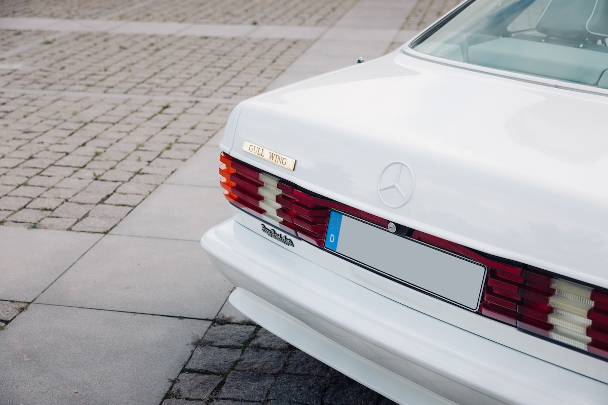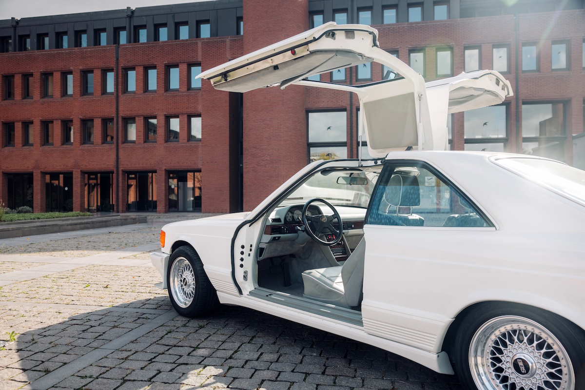 Das Team um Inhaber Christian Hahn realisierte am Unternehmenssitz in Pinneberg bei Hamburg alles, was das Herz der Schönen und Reichen begehrte. Das richtige Geld vorausgesetzt, versteht sich. Die Fahrzeuge wurden in die ganze Welt verschifft. Zu den Kunden gehörten vor allem schwerreiche Öl-Scheichs aus dem Nahe Osten, aber auch US-amerikanische Stars wie Frank Sinatra und Michael Jackson. Eine der exklusivsten und wildesten Kreationen aus dem Hause SGS war zweifellos der Gullwing auf Basis des C126 500 SEC. Insgesamt sollen nur 57 Stück gefertigt worden sein. Nur noch wenige davon existieren in gutem Zustand, umso weniger davon in ihrer deutschen Heimat. Die Rede ist von drei Exemplaren. Eines davon ist das hier gezeigte Fahrzeug.