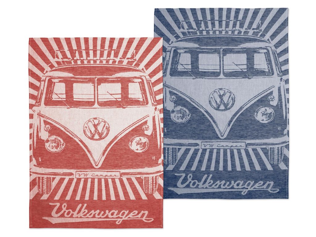 Stylische Geschirrhandtücher im 2er-Pack – natürlich im unverkennbaren VW T1-Design. Mit diesen pflegeleichten Allroundtalenten macht Abwaschen und Abtrocknen gleich doppelt so viel Spaß. Dank des hohen Baumwollanteils sind sie ideal zum Trocknen, Aufwischen oder Polieren – und bringen dabei mit ihrem farbenfrohen Volkswagen-Look echten Retro-Charme in Küche oder Wohnmobil.