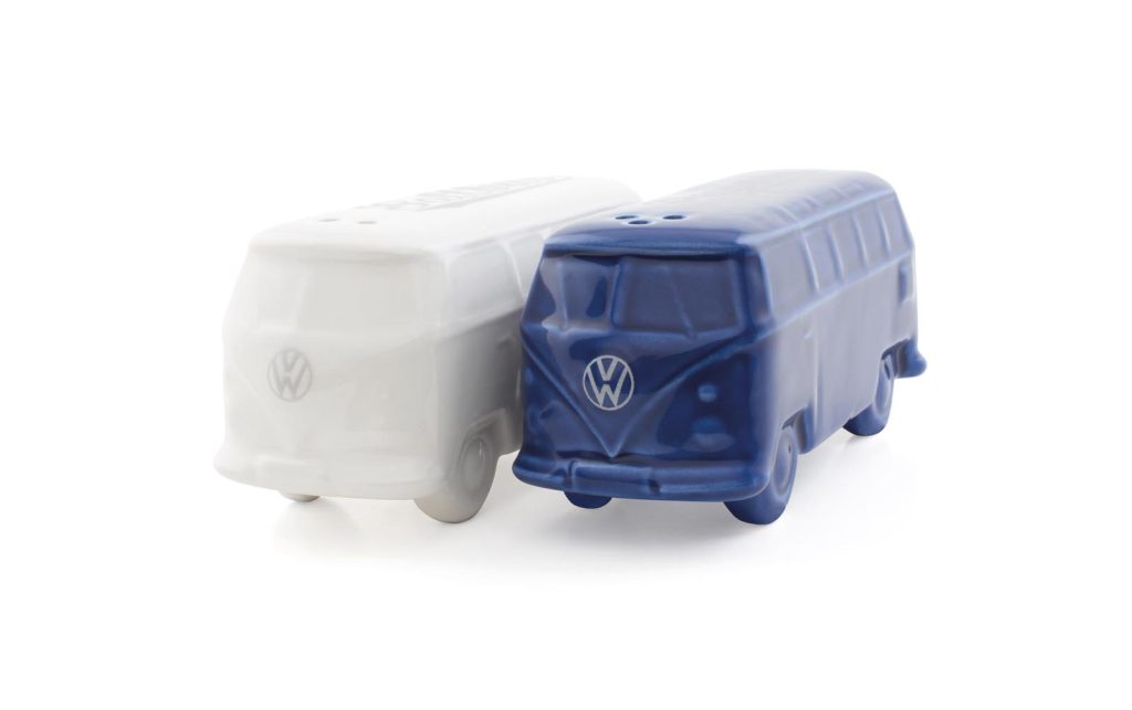 Ob beim Camping, beim Lufti-Treffen oder im heimischen Esszimmer: Die Kombination aus Salz- und Pfefferstreuer im stilechten VW Bus-Design bringt immer die richtige Würze auf den Tisch! Wählbar in Blau, Rot und Schwarz, Maße je Streuer: 10,2 x 4,7 x 4 cm.