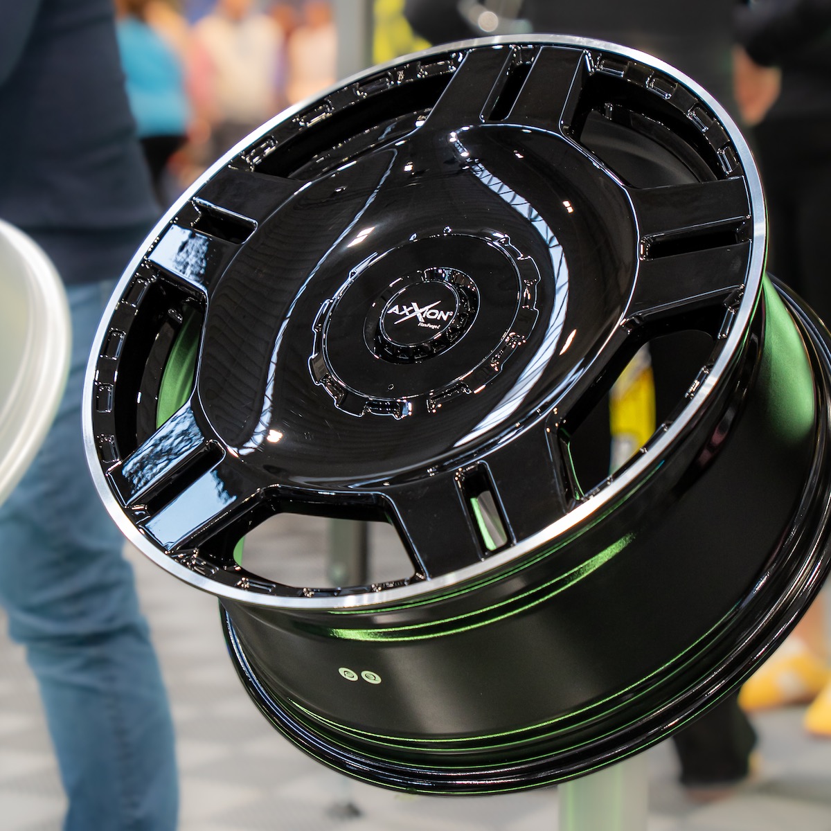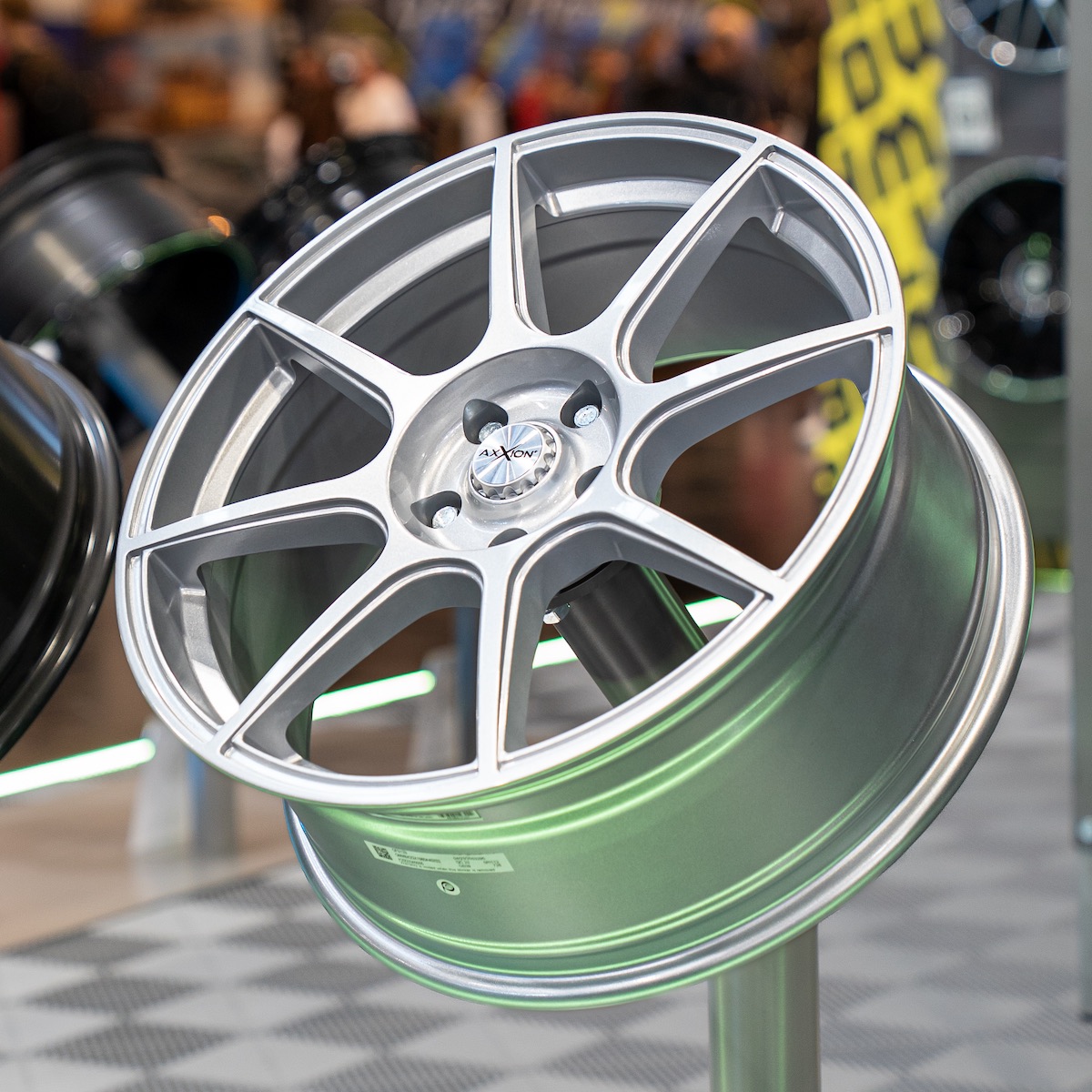 Dank seines mit einem komplett neuen, modularen Konzept realisierten, zweistöckigen Aufbaus erregte der Wheelworld-Stand in Halle 7 bereits aus der Ferne große Aufmerksamkeit. Eyecatcher war dabei ein in der zweiten Etage unter einem großen Wheelworld-Schriftzug platzierter, gelber Mercedes-AMG A 45 S. Als zweites Showcar zog der BMW F32 4er von Influencerin Magdalena Vio die Blicke auf sich. Er diente auch gleich der feierlichen Premiere des neuen Y-Speichen-Rads 2DRV WH47. Ferner konnten die Besucher mit den Axxion-Modellen Y1 FlowForged und Y2 gleich zwei weitere große Messepremieren entdecken.